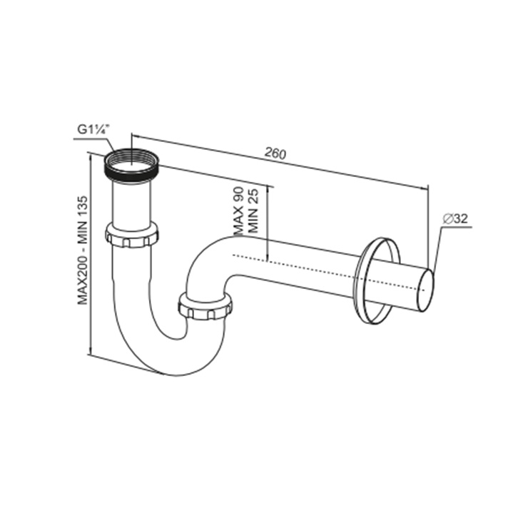 Сифон для раковины и биде Prevex c накидной гайкой 5/4" d32 мм латунь хром