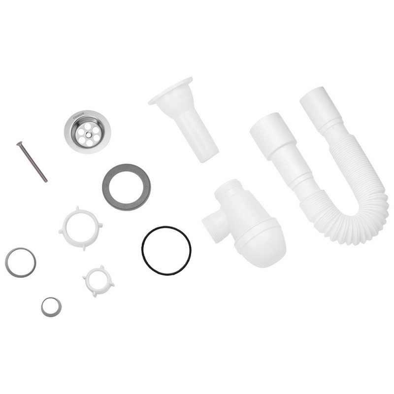 Дополнительным преимуществом данного сифона является гарантия на 10 лет, что подчеркивает высокое качество и долговечность изделия. Комплектация включает в себя резиновую пробку серого цвета, обеспечивающую надежное закрытие сифона и предотвращение проникновения запахов из канализации в помещение.