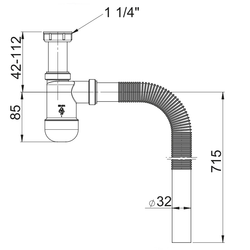 Сифон для раковины Prevex Basic телескопический c накидной гайкой 5/4" d32/40 мм