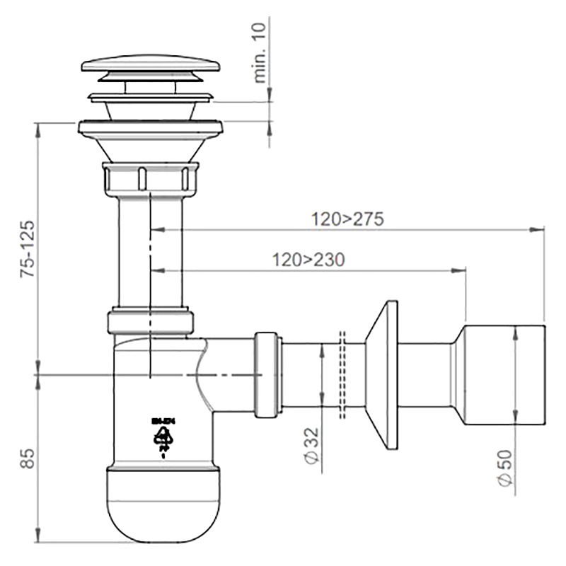 Сифон для раковины Prevex Basic телескопический click-clack 32/50 мм