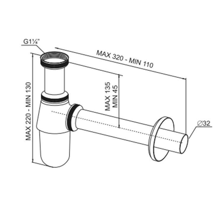 Сифон для раковины Prevex c накидной гайкой 5/4" d32 мм латунь хром