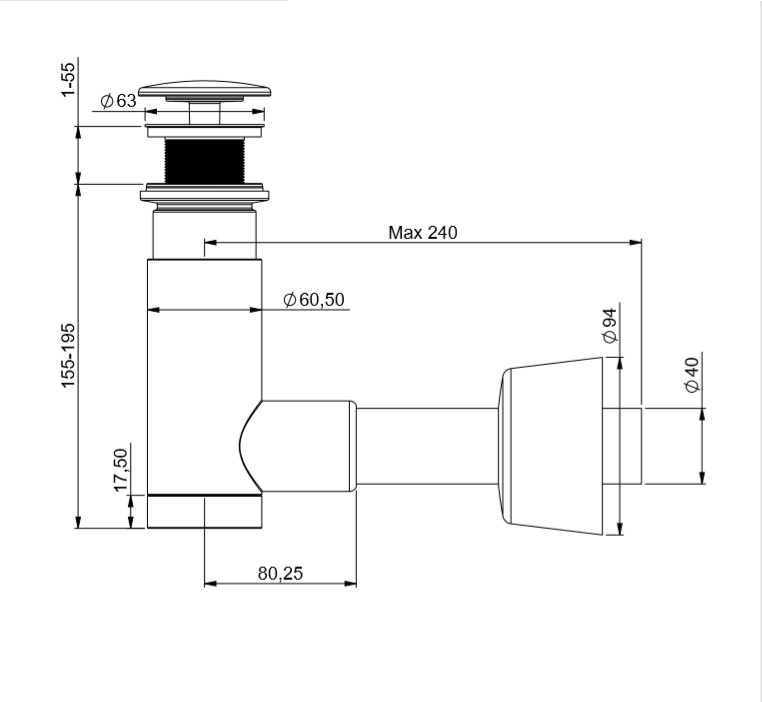 1) Сифон для раковины Prevex EasyClean телескопический click-clack d40 пластик хром