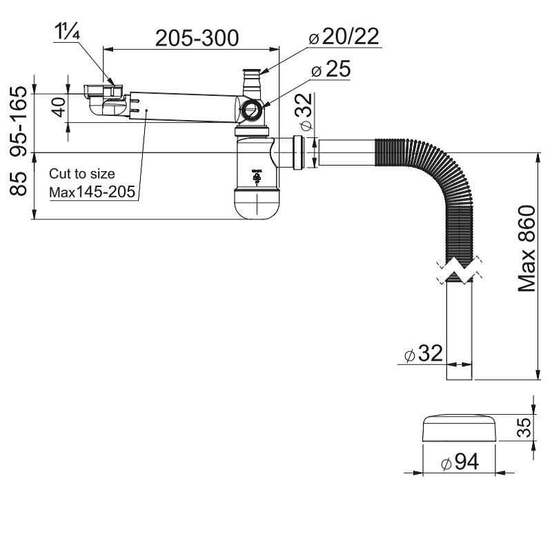 Представленная модель колбового сифона с накидной гайкой Preloc PR3-N4NF3-004 от Prevex оснащается подключением к стиральной машине, с диаметром подсоединения сливной гофрированной трубы (885 мм) к канализации 32 мм, выполнена из высококачественного пластика, и станет отличным дополнением для раковины.
