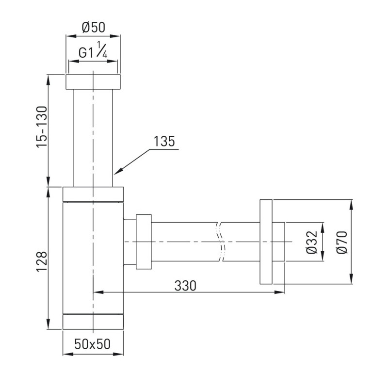 - Тип сифона: бутылочный