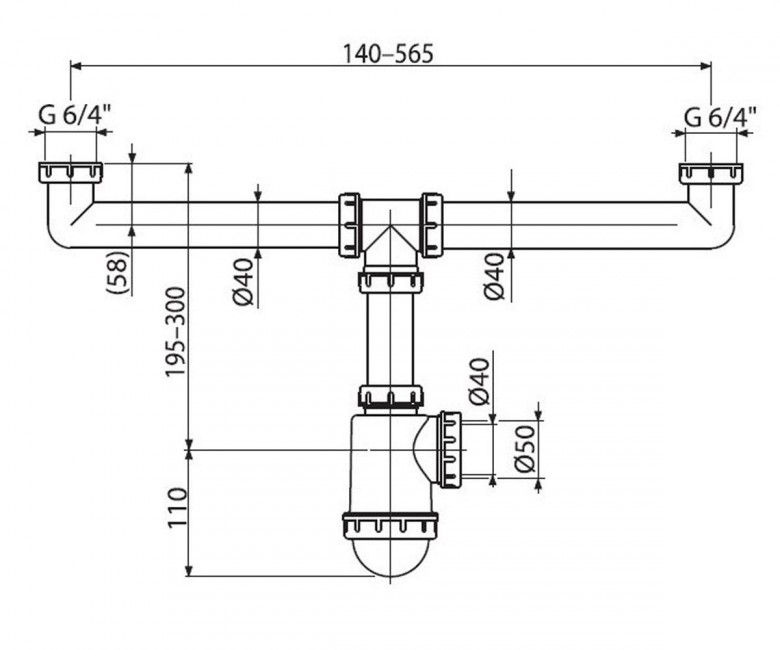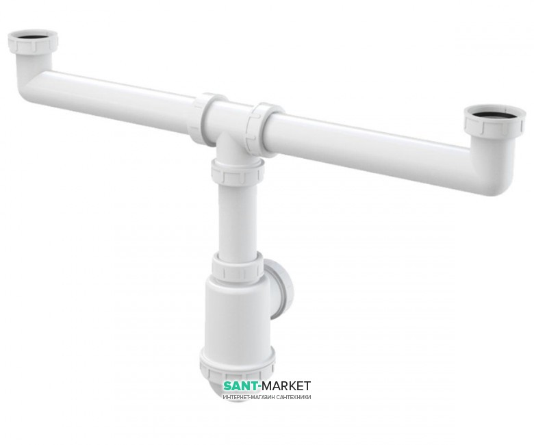 Сифон для сдвоенной мойки AlcaPlast с накидными гайками 6/4"