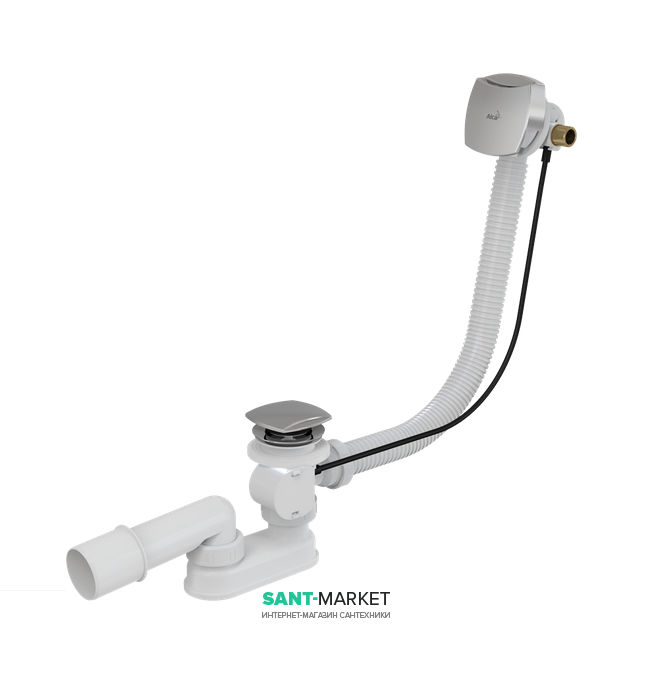 Сифон для ванны AlcaPlast с напуском воды через перелив хром