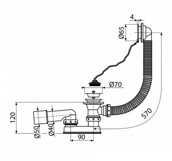 1) Сифон для ванны Koller Pool A501 с пробкой