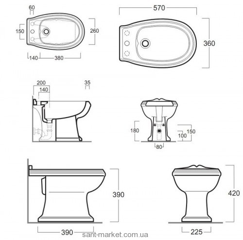 Биде напольное Simas коллекция Arcade 57х36х39 с переливом AR823
