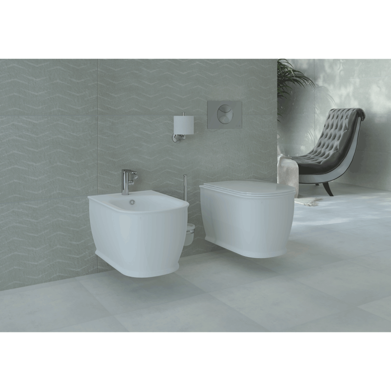 Комплектация: 2 резьбовые шпильки М12 для крепления санфаянса, крепежные элементы, смывной бачок, кнопка для смыва воды, шумоизолирующая прокладка