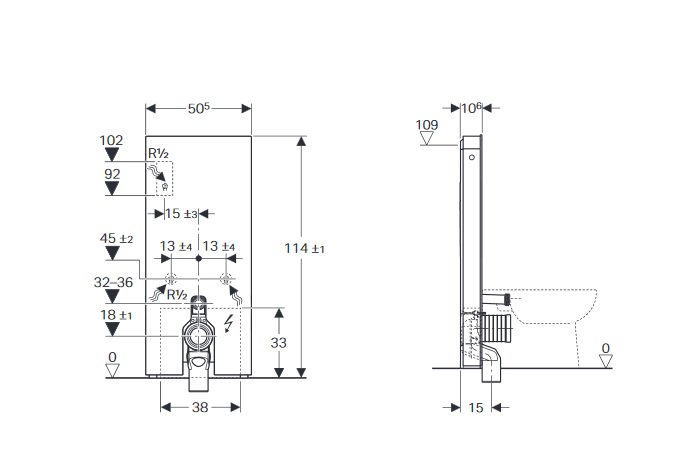 - Для замены напольных унитазов со смывным бачком скрытого монтажа с макс. высотой окна технического обслуживания < 109 см