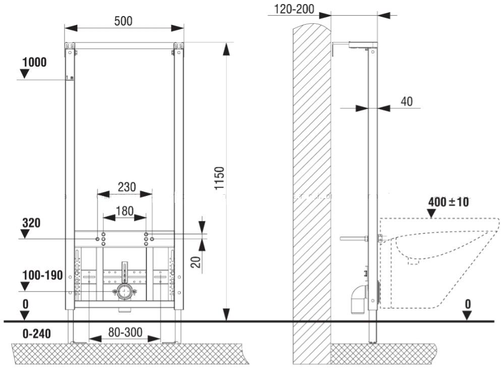 1) Система инсталляции для подвесного биде Pestan Fluenta