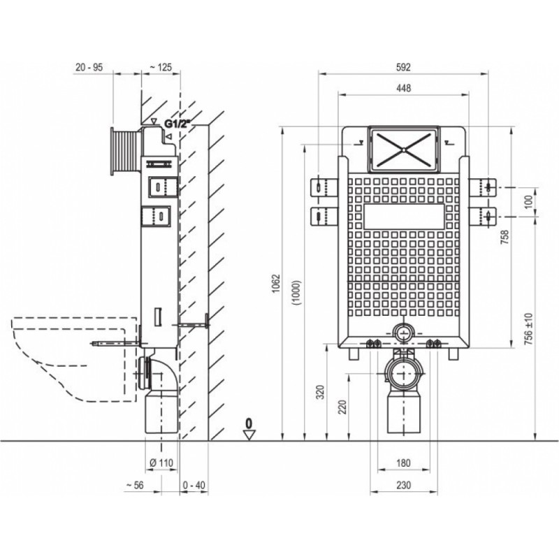 Система инсталляции для подвесного унитаза Ravak W/1000 сталь/пластик X01458