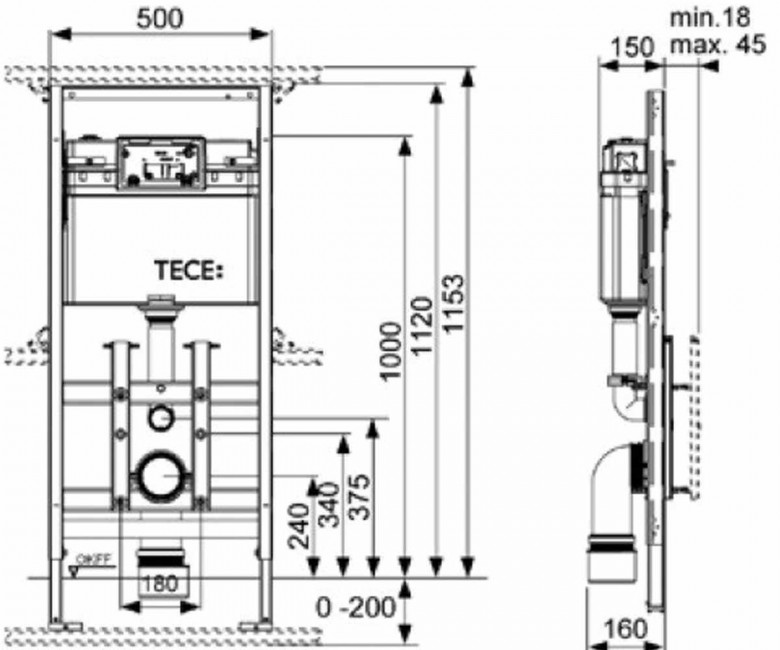 Система инсталляции для подвесного унитаза TECE TECElux 1120 мм
