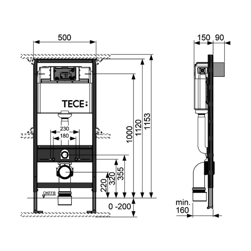 Инсталляция TECE для унитаза 9300000 применима во множестве установочных ситуаций. Благодаря предварительно сделанным в раме отверстиям и вырезам модули легко интегрируются: