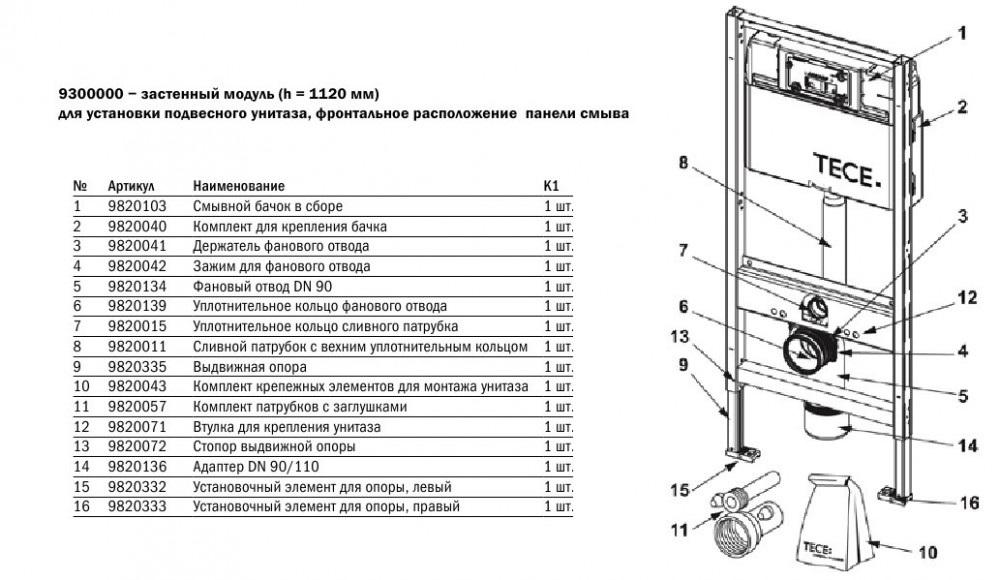 - Монтаж инсталляции TECE для унитаза 9300000 легко выполняется одним человеком.