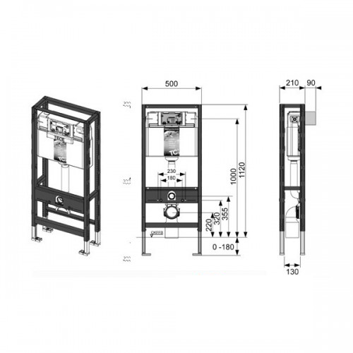 Система инсталляции для подвесного унитаза TECE ТЕСЕprofil 1120 мм монтаж без опоры на стену 9300031