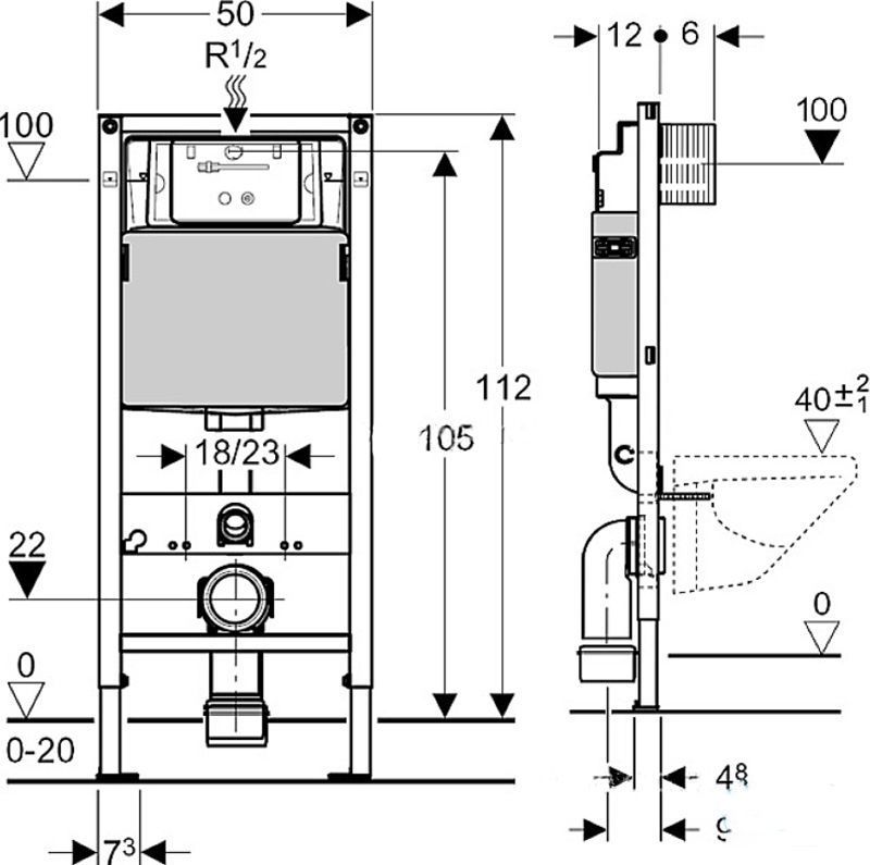 Система инсталляции для подвесного унитаза Geberit Duofix cо встроенным бачком Delta и клавишей Delta50 хром глянцевый