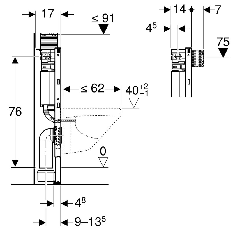 Система инсталляции для подвесного унитаза Geberit Duofix cо встроенным бачком Omega с фронтальным или горизонтальным управлением