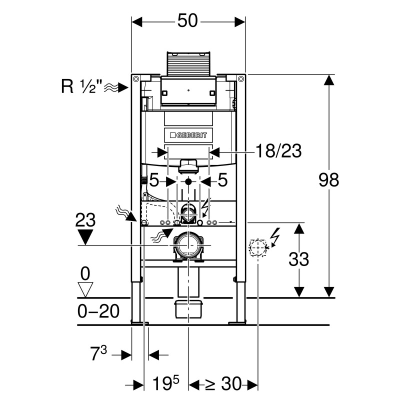 Система инсталляции для подвесного унитаза Geberit Duofix cо встроенным бачком Omega с фронтальным или горизонтальным управлением 111.030.00.2