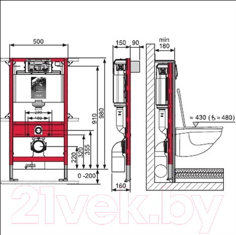 Система инсталляции для подвесного унитаза TECE TECEprofil красный 9300022
