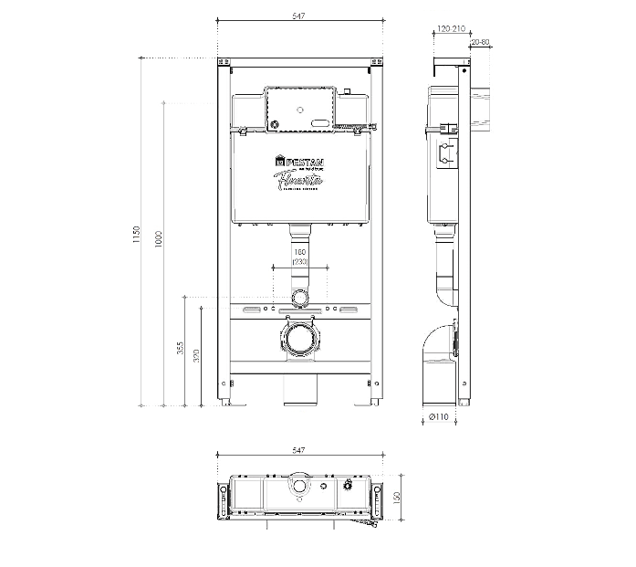 - Ширина инсталляции: 54.7 см