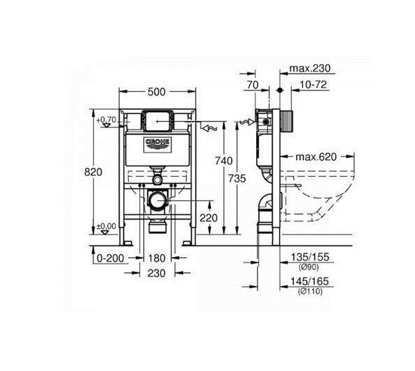 1) Система инсталляции для унитаза Grohe Rapid SL с бачком