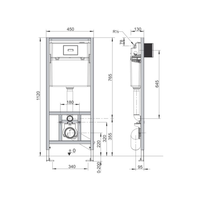 Система инсталляции для унитаза Primera 4-в-1 с клавишей смыва серый