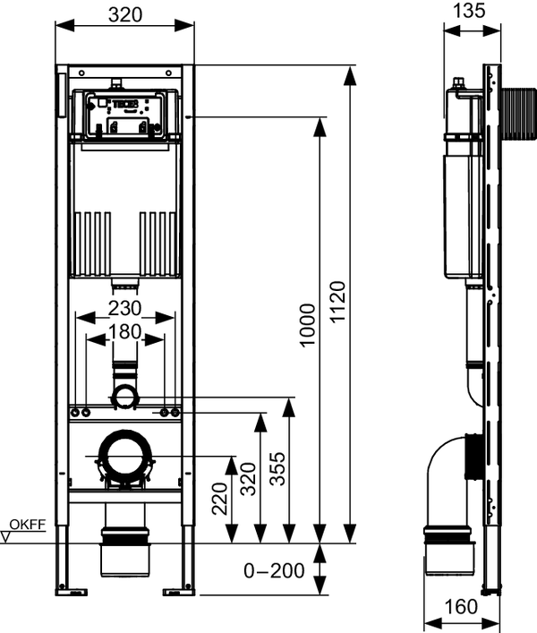 TECEprofil застенный модуль с бачком Compact 320, монтажная высота 1120 мм