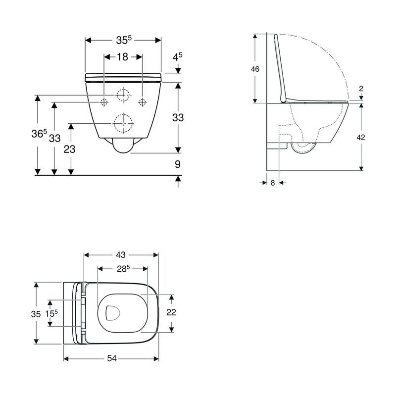 - Для подвесных унитазов с размерами подключения согласно EN 33:2011