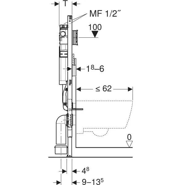 - Для подвесных унитазов с присоединительными размерами в соответствии с EN 33:2011