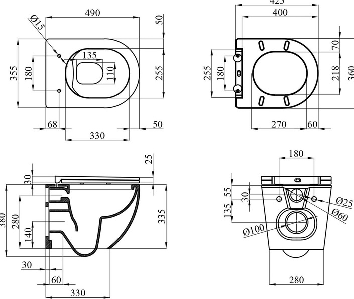 - Современный подвесной унитаз с овальной формой и компактными габаритами для эстетики и практичности.