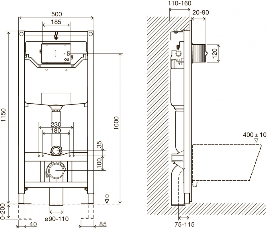 Инсталляция станет отличным выбором для ее установки внутри перегородки, пристенной установки или установки между сплошными стенами.