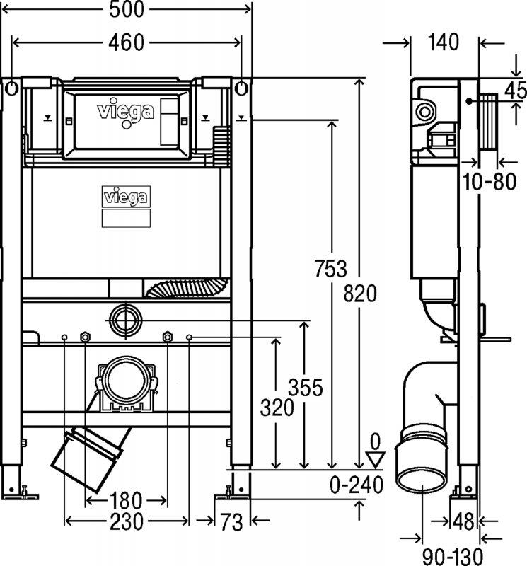 Система инсталляции подвесного унитаза-биде Viega Prevista Dry сталь 772017