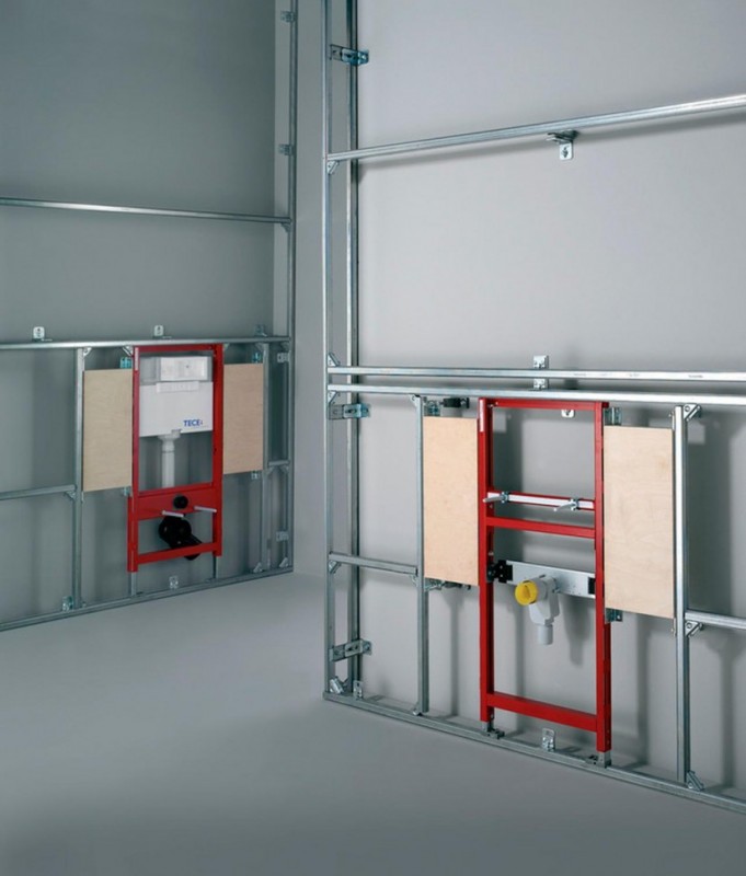 В продаже есть подвесные умывальники, тяжесть которых требует инсталляцию. Установка подвесных умывальников с использованием немецкой инсталляции TECE - очень проста и не занимает много времени.