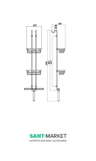 Система подвесных полочек Emco 20х94.6 с щеткой для очистки стекла фиксируется на дверь 3566 001 06