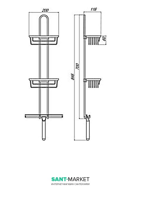 Система подвесных полочек Emco 20х94.6 с щеткой для очистки стекла фиксируется на дверь 3566 001 08