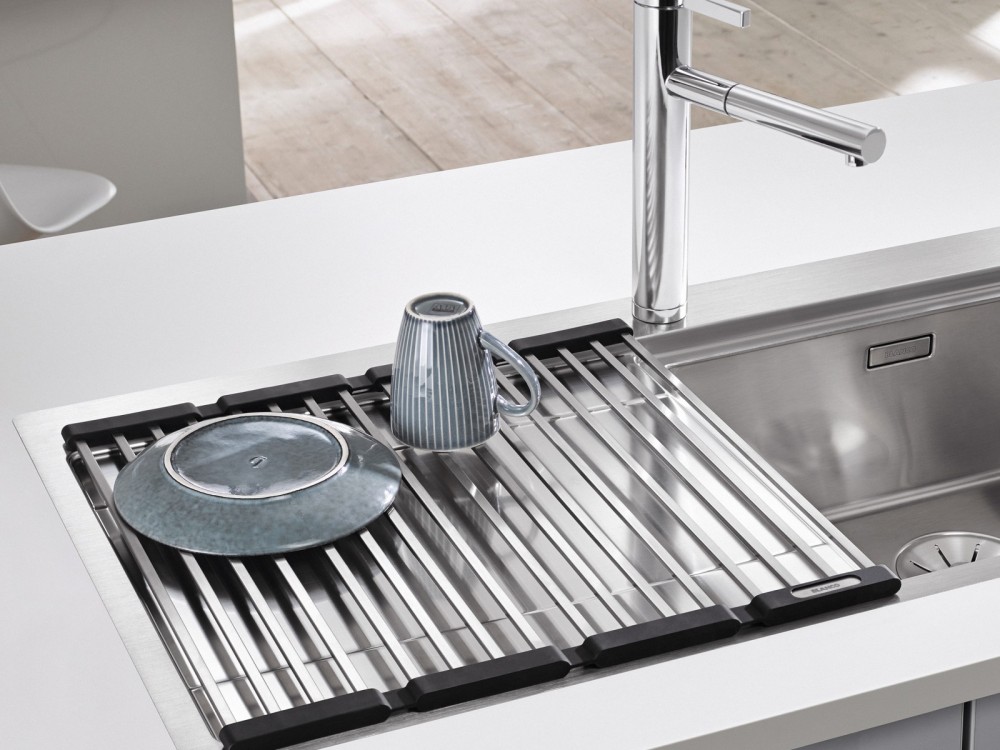 Складная решетка Blanco подходит к чувствительными поверхностями и служит защитой от царапин и перегрева столешницы, например от горячей кастрюли. Решетка подойдет для моек с ровным крылом, не оснащенным водоотводящими желобами: решетку в таком случае можно установить сверху на крыло, так посуда будет лучше высыхать. Также складная решетка Blanco подойдет для моек без крыла-сушилки, став его полноценным заменителем.
