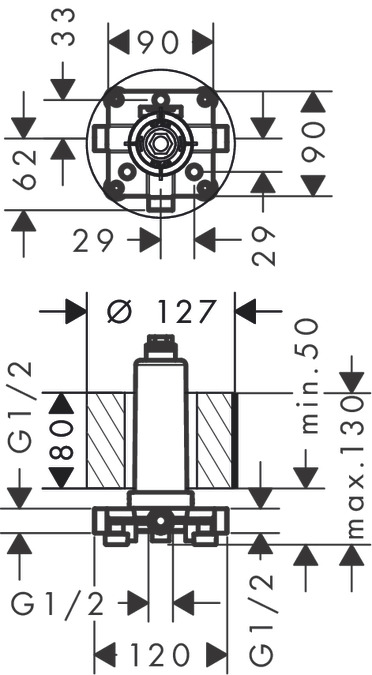 1) Скрытая часть для верхнего душа Hansgrohe Axor ShowerSolutions