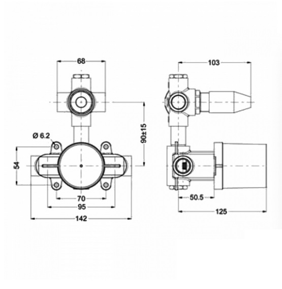 Скрытая монтажная часть термостата для душа Eurorama Wellness на 2 потребителя