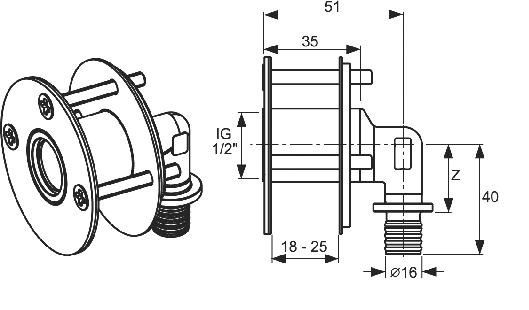 Сквозное угловое соединение для фиксации в перегородке TECE TECEflex 16х1/2"