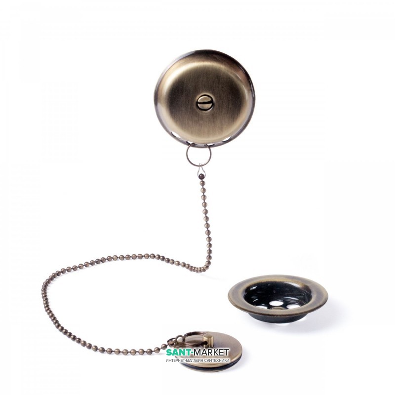 Слив для ванны Tres Ø 70 мм с пробкой для слива и перелива состаренная латунь