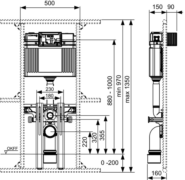 - Сливной бачок Uni 2.0 для фронтальной установки панели смыва