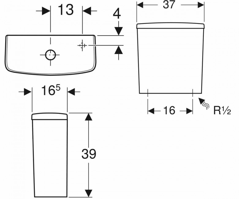 1) Сливной бачок для унитаза-компакта Geberit Selnova Square 37х39 см фарфор белый