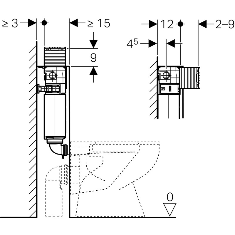 - Смывной бачок скрытого монтажа с верхней/фронтальной установкой