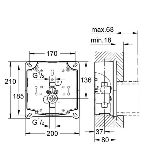 - Монтажный короб с уплотнителем точки крепления для сухого облицовки и кладки