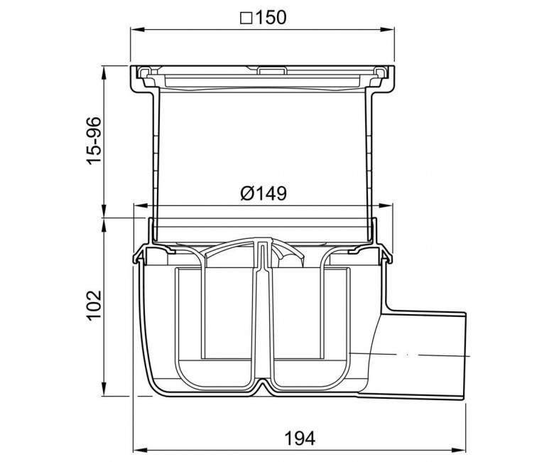 Сливной трап для душа ACO Easy Flow 150х150 мм горизонтальный выпуск серый/черный 2500.05.77