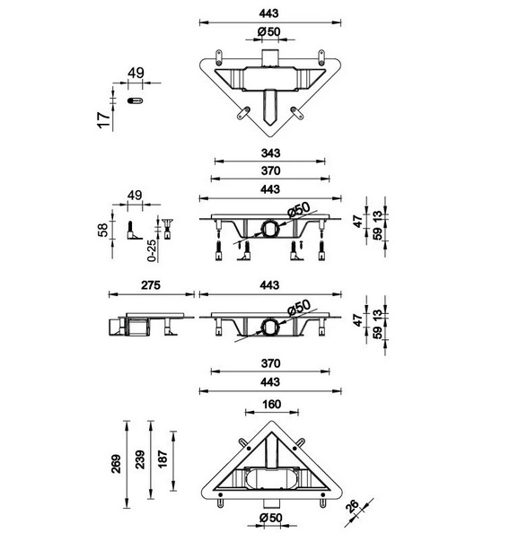 Сливной трап для душа Styron с решеткой Klassic нержавеющая сталь STY-KF