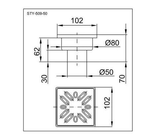 Сливной трап для душа Styron с решеткой 102х102 мм нержавеющая сталь STY-509-50