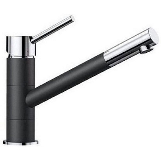 1) Смесиетль для кухни Blanco Kano однорычажный с выдвижным изливом хром/черный