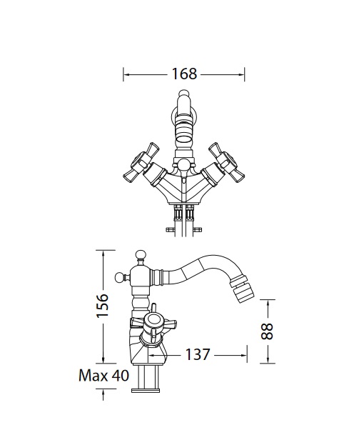 1) Смеситель для биде Eurorama Orientes двухвентильный латунь бронза